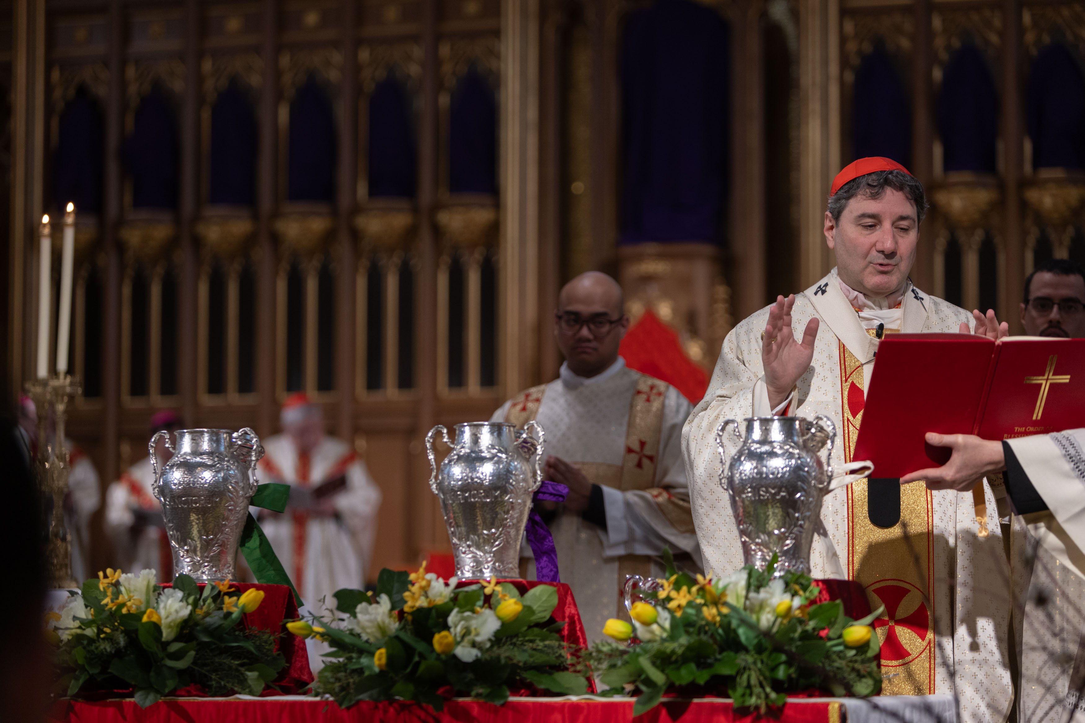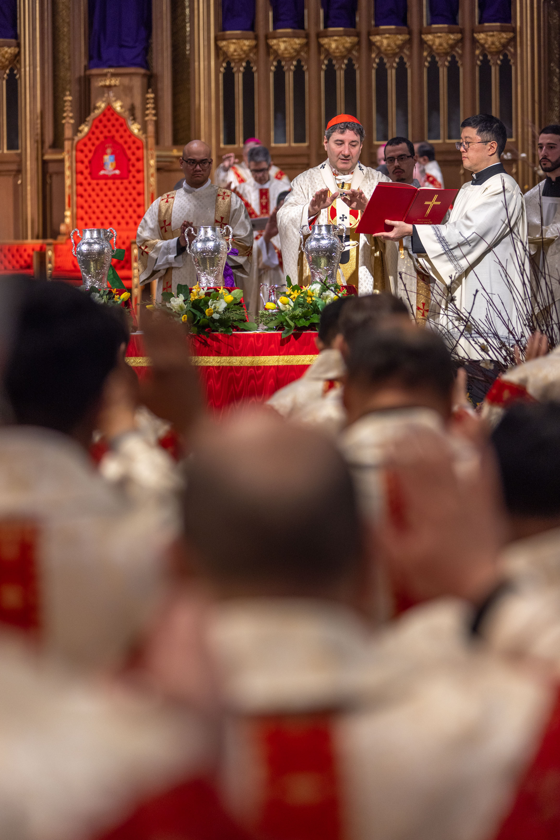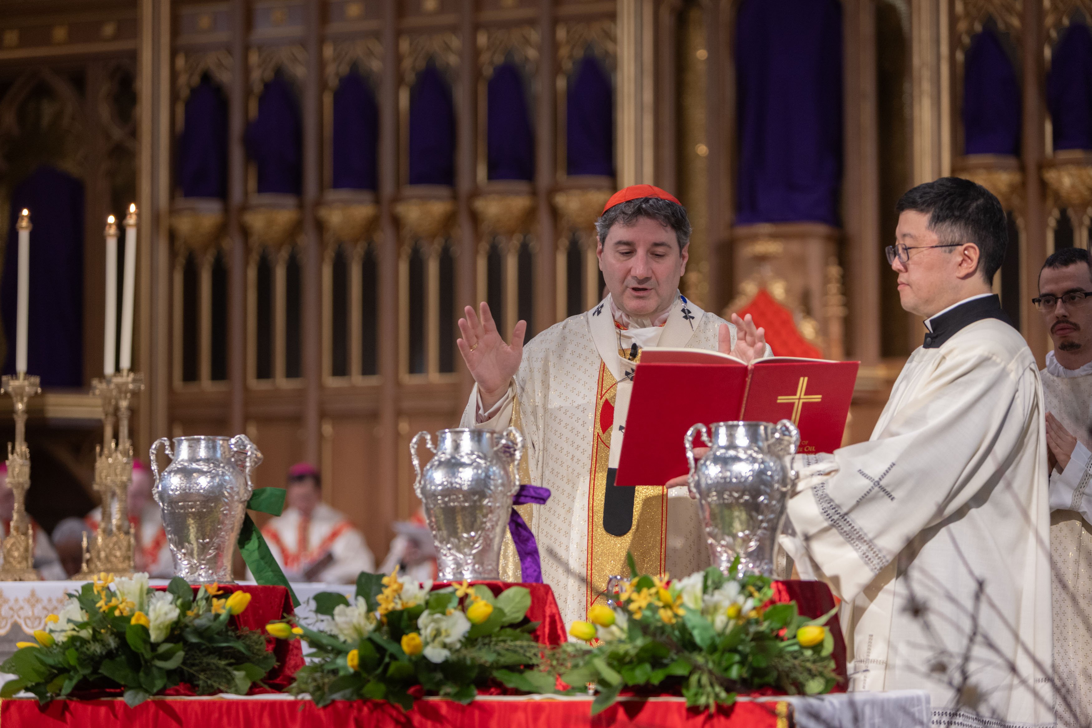 During this solemn liturgy, the Oil of the Sick and the Oil of Catechumens are blessed, and the Sacred Chrism is consecrated.