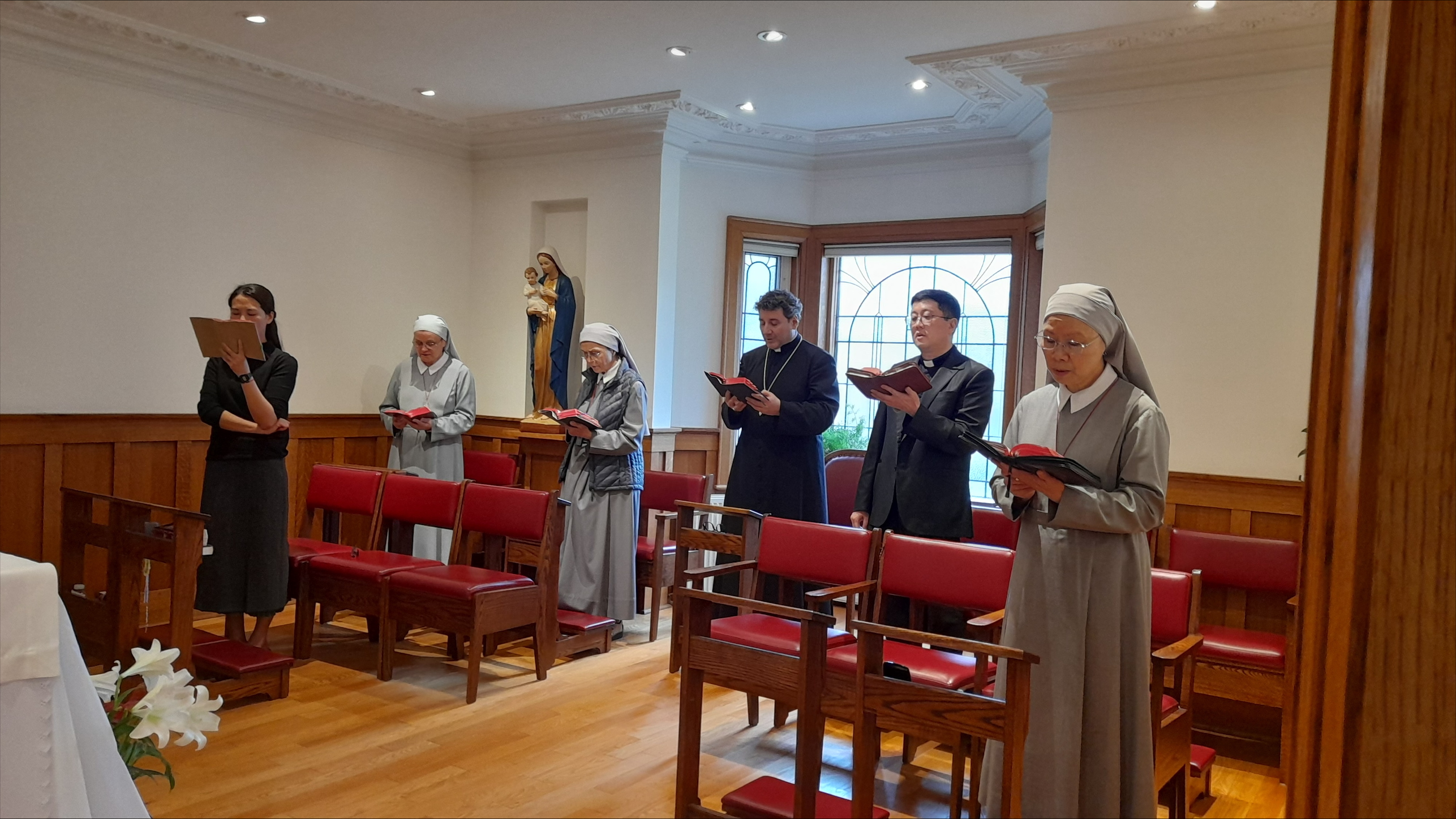 On April 15, the Community of the Missionary Sisters of St. Peter Claver had the great joy and honor of welcoming His Eminence Frank Cardinal Leo for his first visit to their convent. Time together began with Vespers, followed by a fraternal dinner.